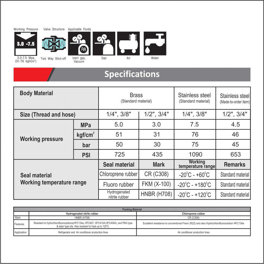 - Having automatic shut-off valves in both socket and plug facilitates easy fluid handling. Suitable for a wide range of vacuum applications as high as 1.3 X 10-1 Pa {1 x 10-3 mmHg} even when disconnected.